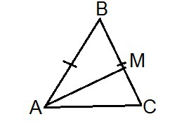 2) Другий малюнок: проведемо медіану AM. З властивості медіани відомо, що вона ділить сторону на дві рівні частини (BM=MC) Позначимо AB за 2х, тоді AB=BC=2x і BM=MC=x. Звідси: