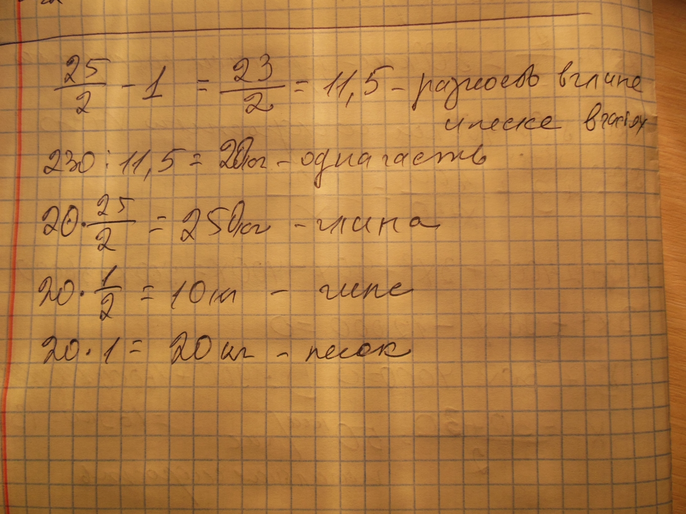 фарфор складається з глини гіпсу й піску причому між їхніми масами існуе відношення пропорційне числам 25/2 1/2 1 скільки буде фарфору якщо для його віготовлення взялі глини на 230 кг більше ніж піску