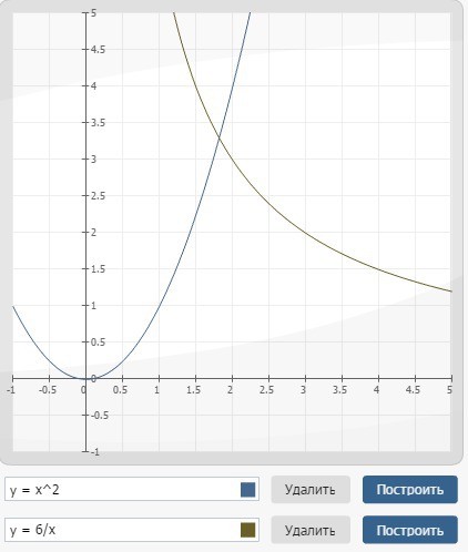 Точная абсцисса точки пересечения получается из уравнения x^2=6/x.