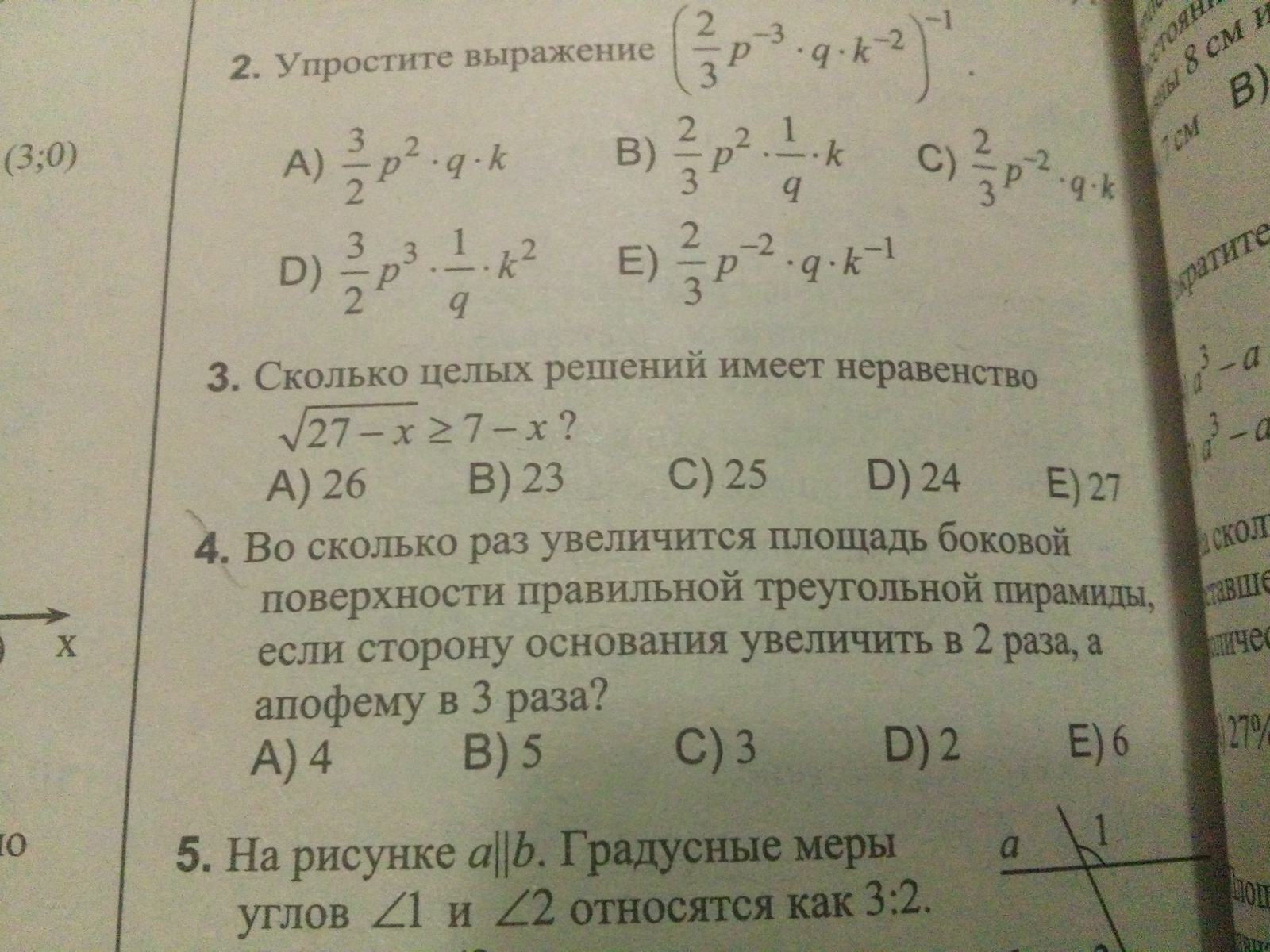 Объединяя оба случая получим ответ неравенства [2;27]. В этом множестве 26 целых чисел от 2 до 27. Ответ: А.