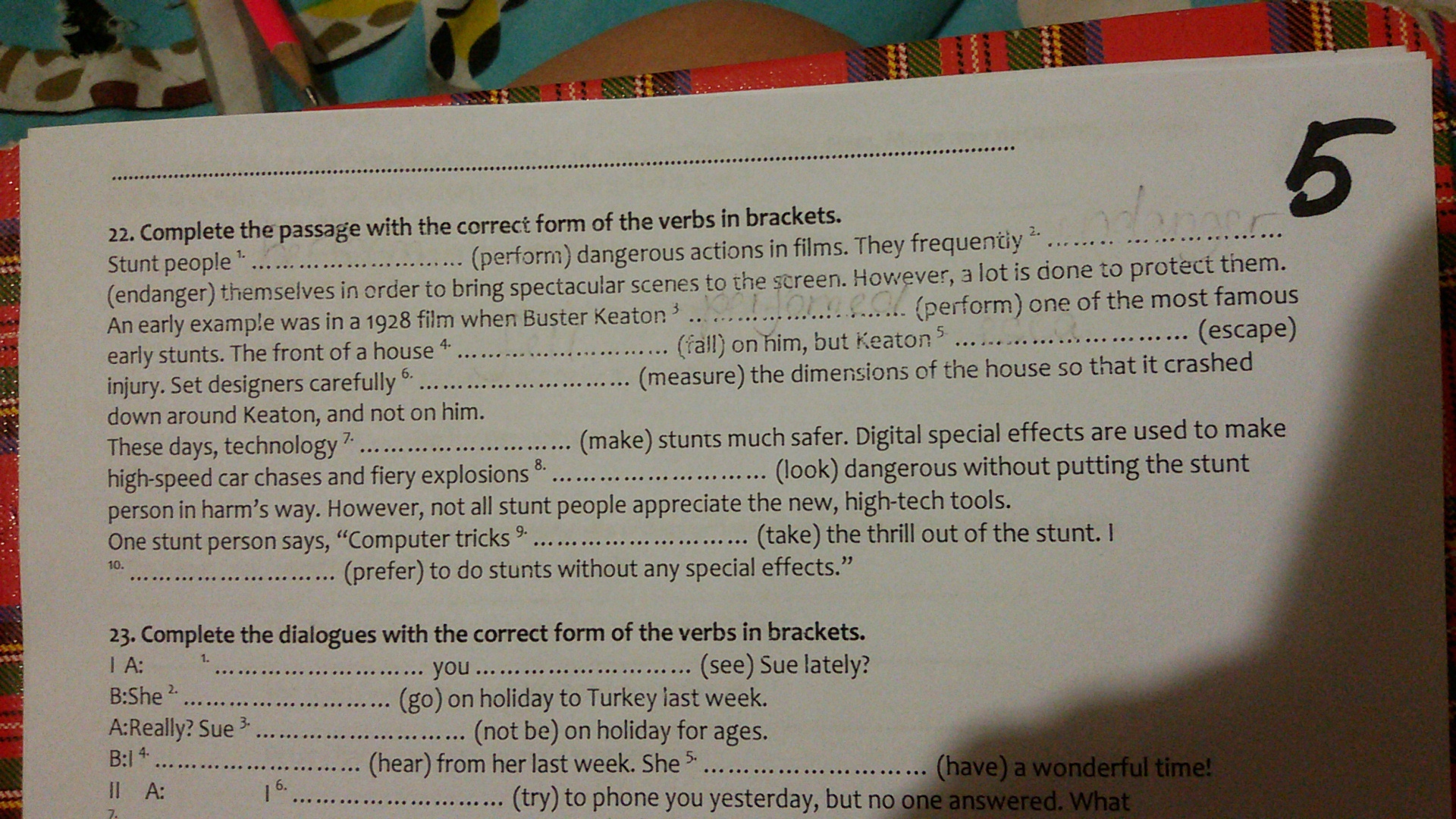 perform... endanger... was performing... fell... escaped... measured... makes... look... take... prefer...