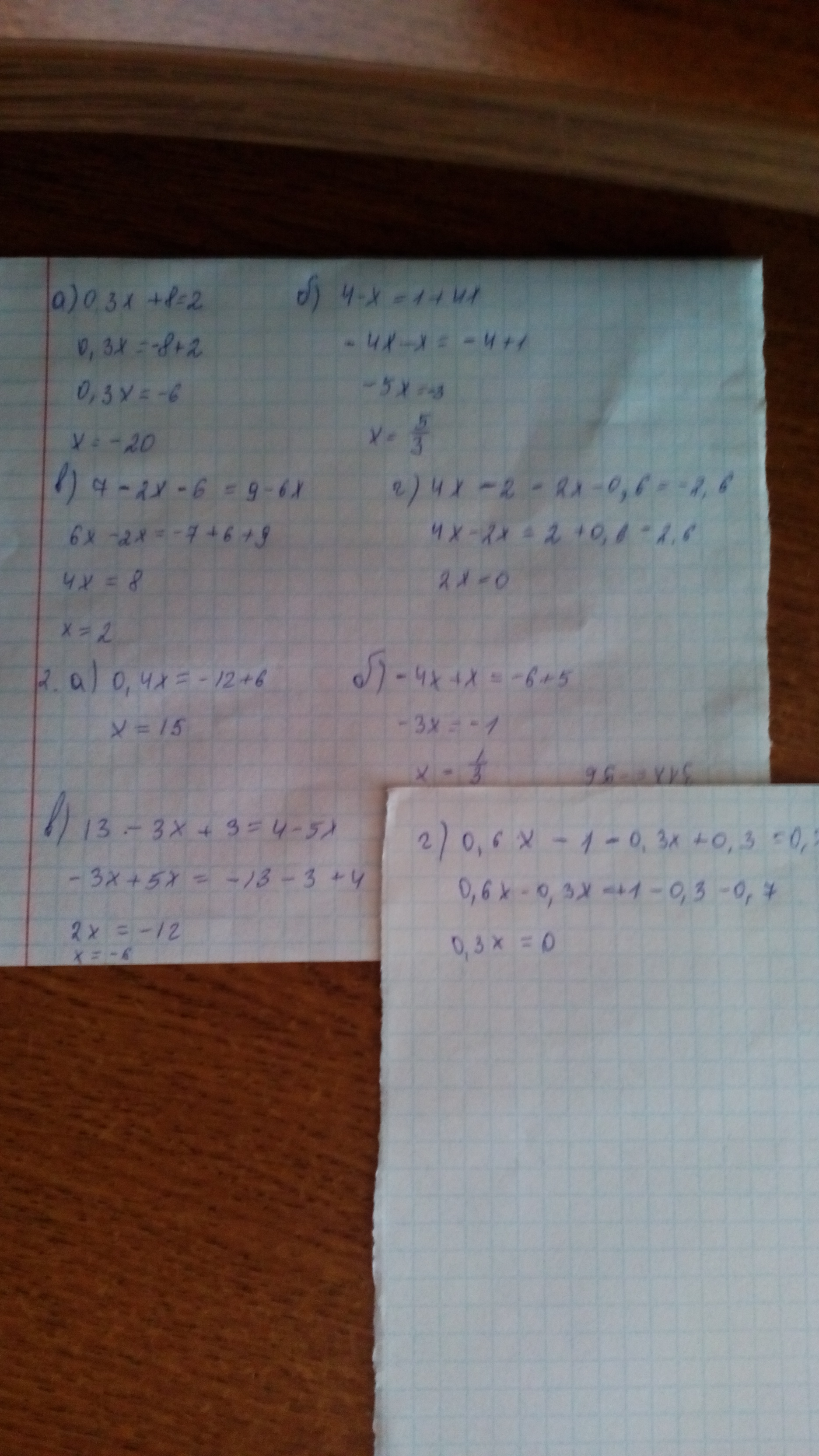 г)0,2(3х-5)-0,3(х-1)= -0,7
