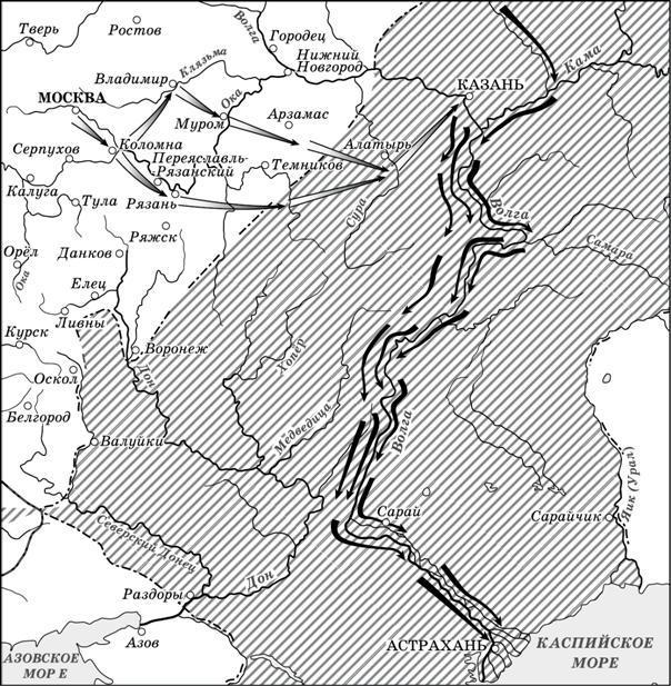 Это походы Ивана Грозного в Казанское ханство и Астраханское ханство