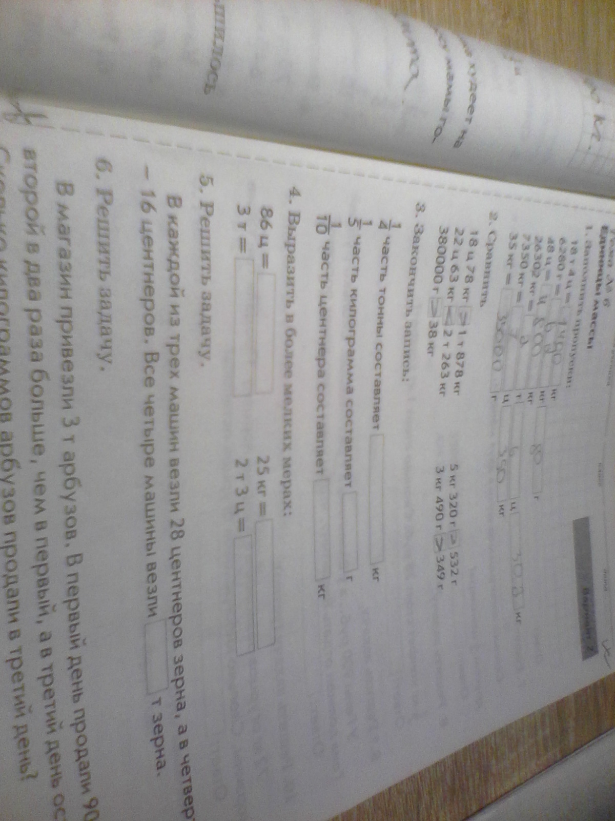 1) 1 тонна - 1000 кг. Значит 1000÷4=250 кг.