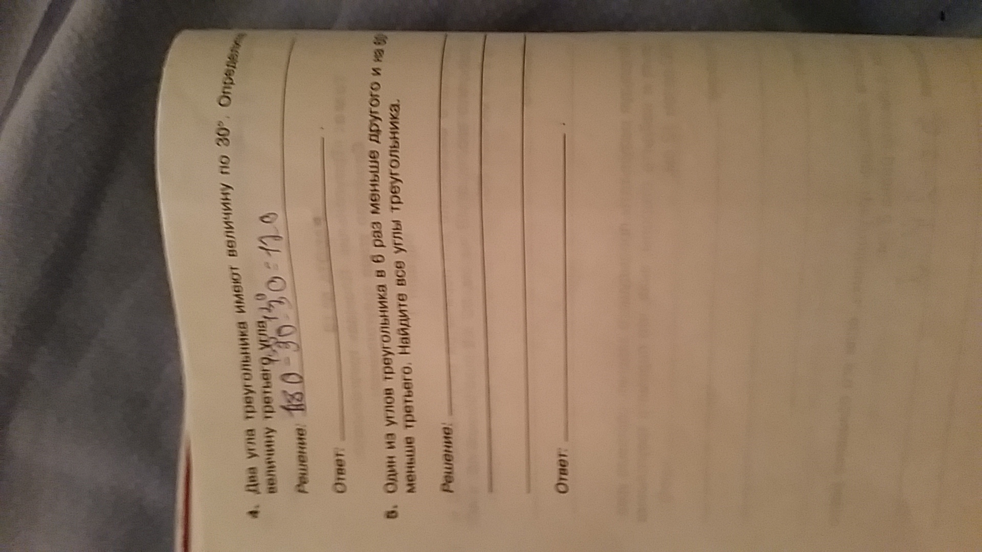 Один угол x, другой 6x, третий 60 +x.