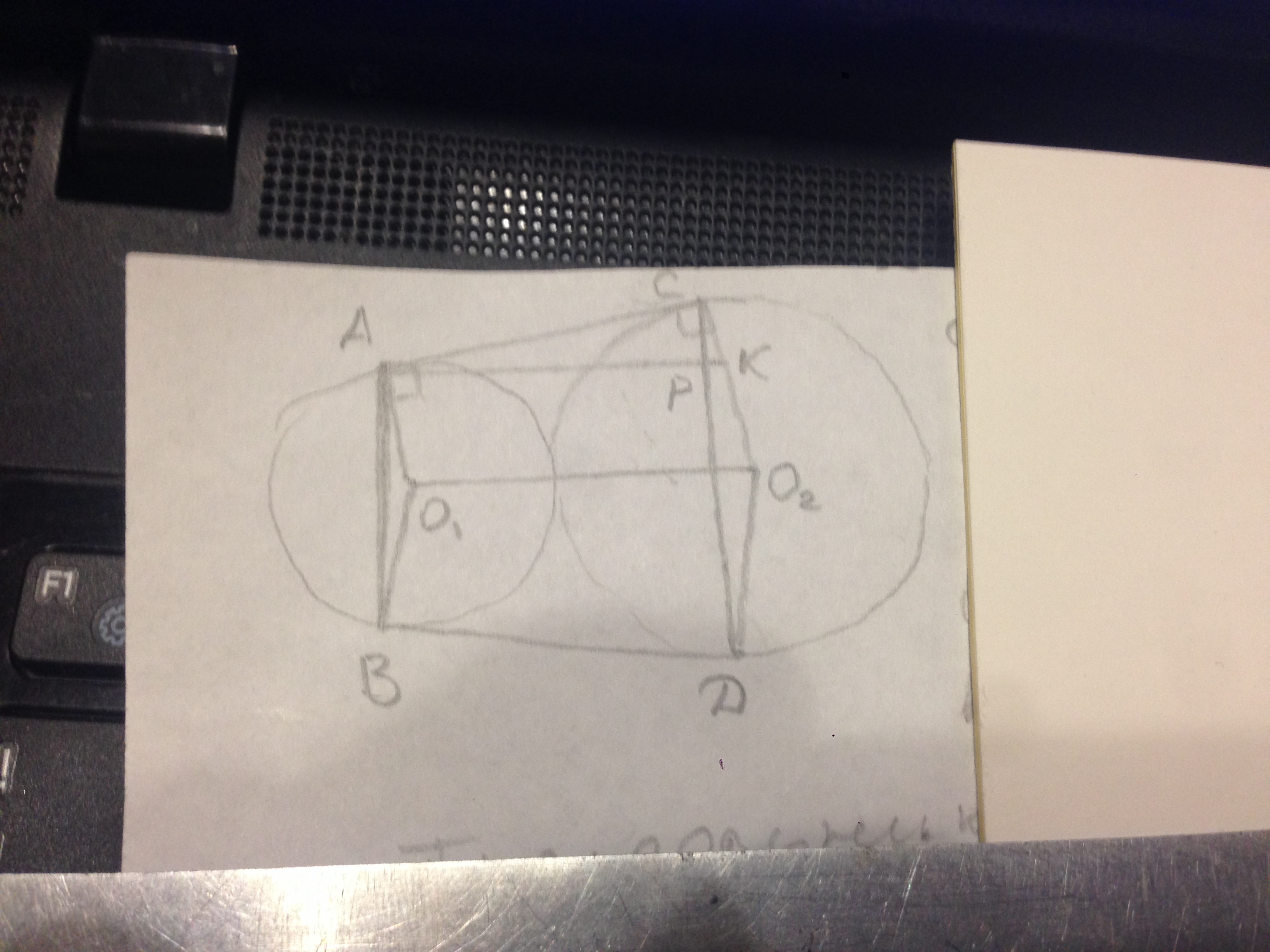 окружности радиусов 45 и 90 касаются внешним образом. точки a и b лежат на первой окружности, точки C и D на второй .При этом AC и BD общие касательные окружности Найдите расстояние между прямыми AB и CD