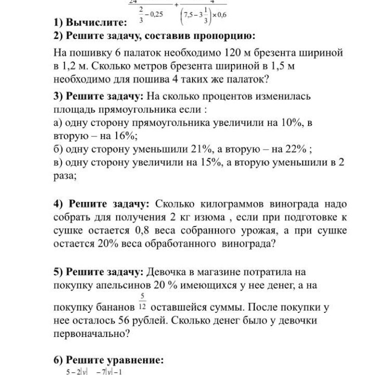 2- На пошив одной палатки потребуется (120х1.2)/6=24 (кв. м) . брезента. Значит на пошив 4-х палаток потребуется 24х4=96 (кв. м). Теперь узнаем, склько м брезента шириной 1.5 м потребуется :96/1.5=64 (м). Можно так :(120х1.2) : 6 х 4 : 1.5 =64
