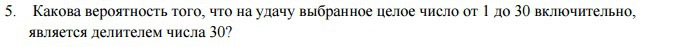 Событие А - наудачу выбранное целое число от 1 до 30 включительно является делителем числа 30.