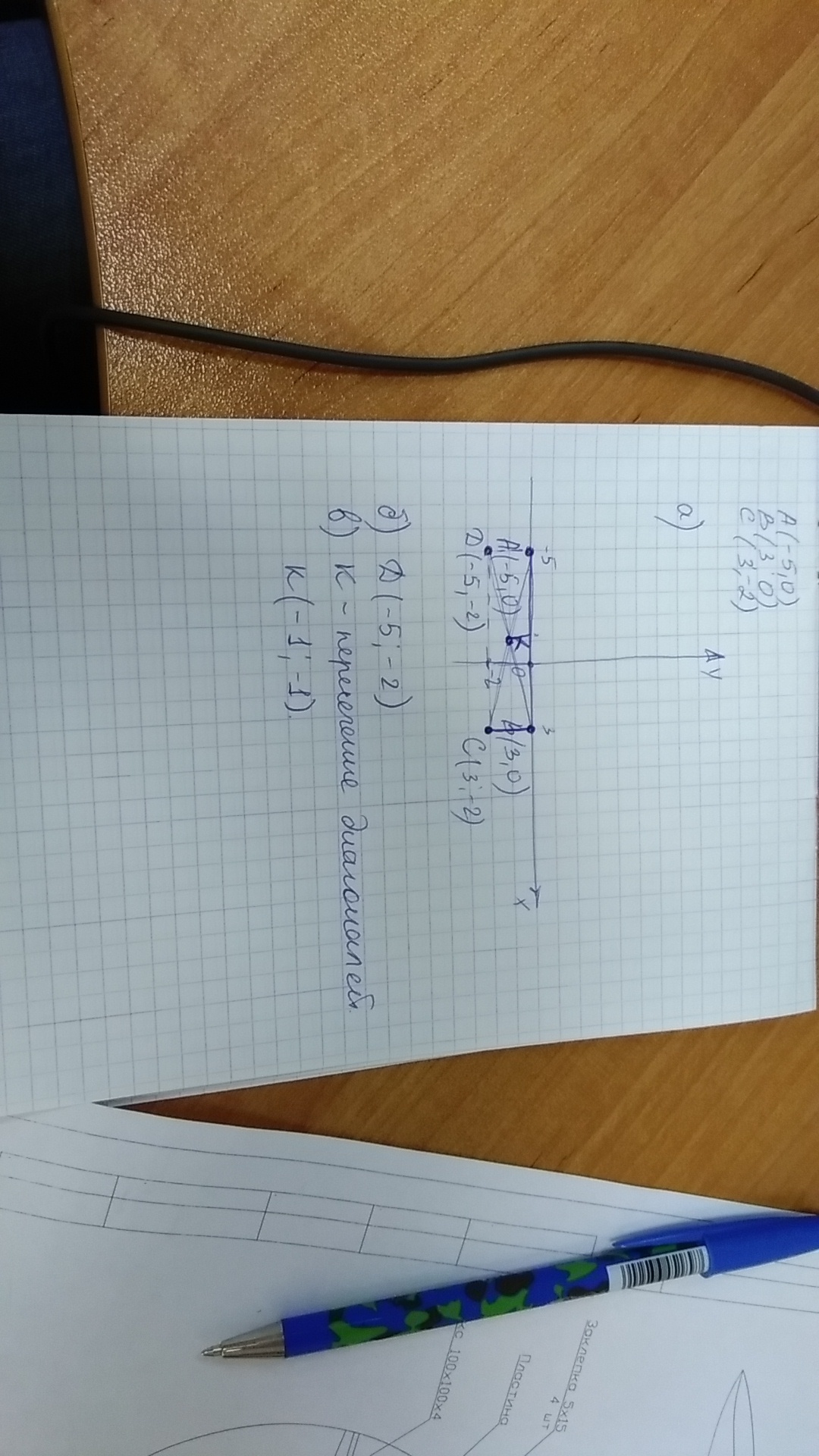 в)постройте K - точку. Пересечения отрезков AC и BD и найдите ее координаты.