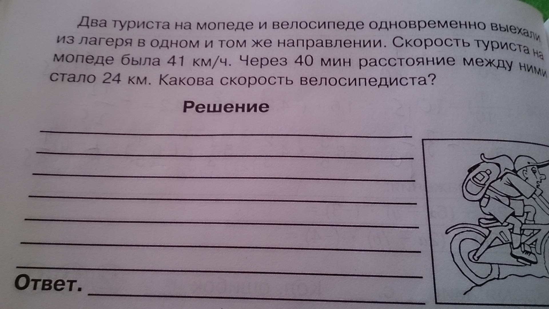 х = 5 км/ч - скорость велосипедиста