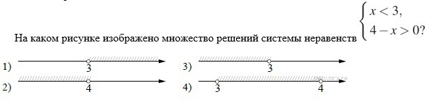Решение: x<3 (тут все понятно); разбираем 2-ое неравенство 4-x>0.