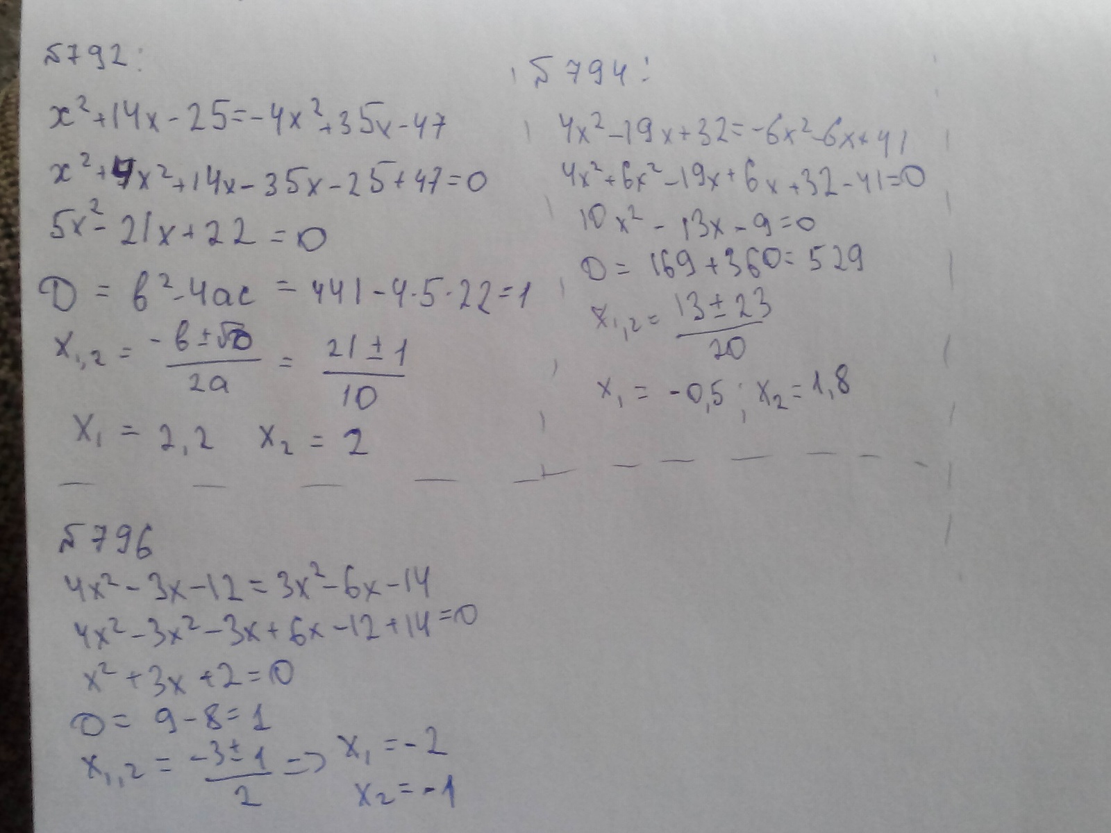 792.794.796. Квадратные уравнения. Очень срочно. Отмечу за лучшее. Решите пж на листочке