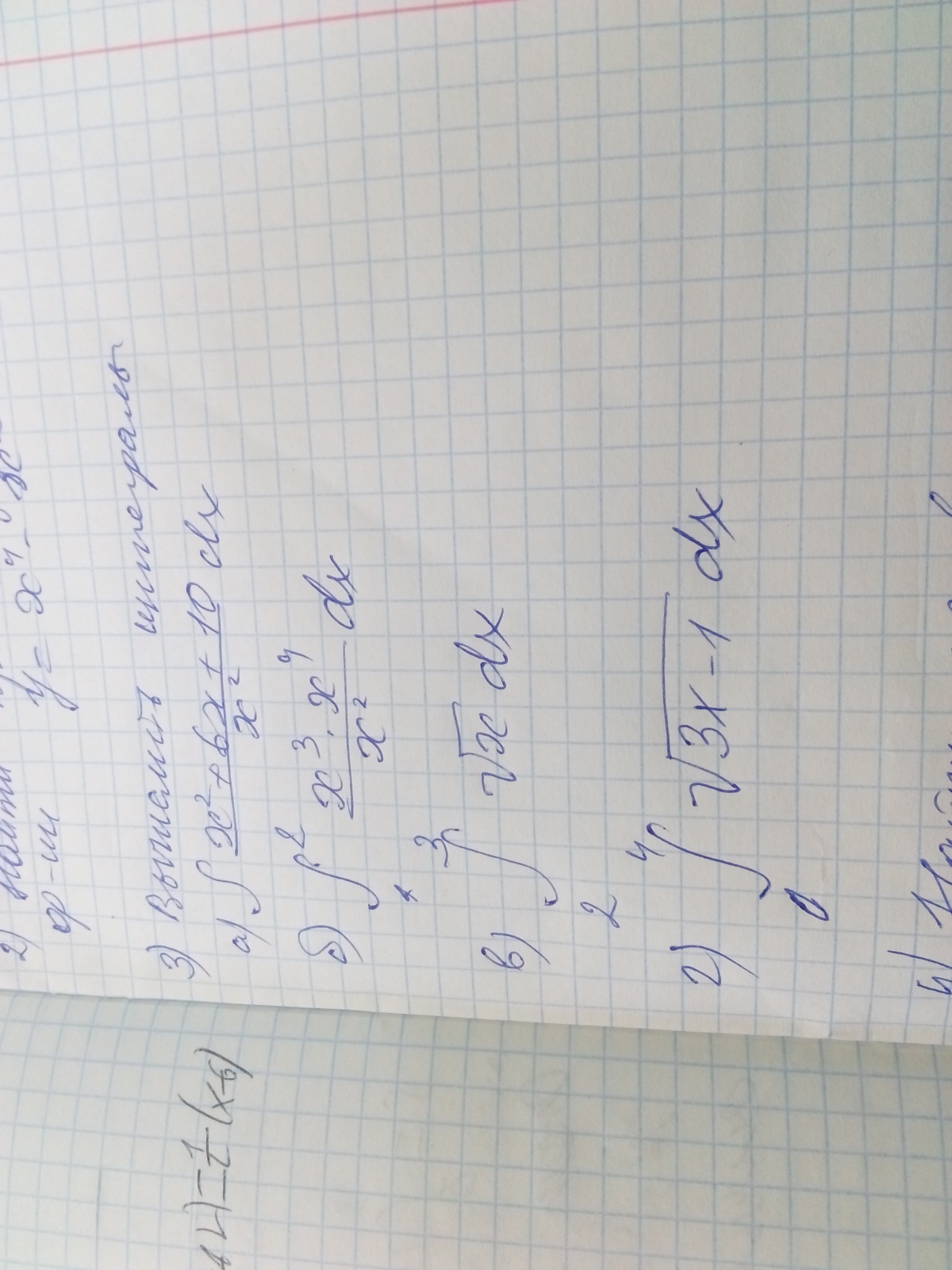 d) ∫√(3x-1)dx t=3x-1≥0 x≥1/3 dt=3dx dx=dt/3 1/3∫√tdt=1/3[2/3*t^1.5]=