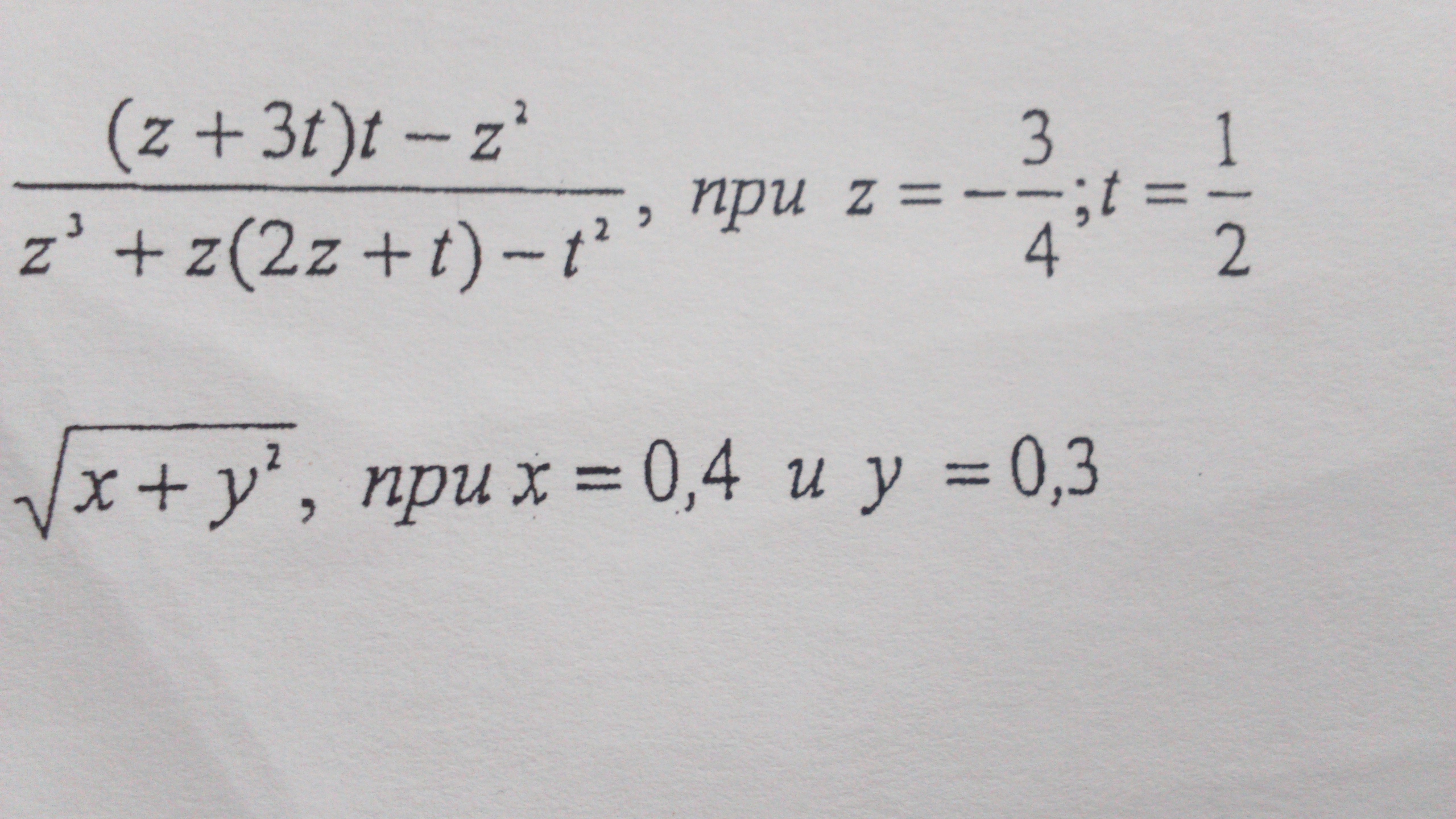2) z³ + z·(2z+t) - t² = (-3/4)³ - (3/4)·(-3/2+1/2) - 1/4 =