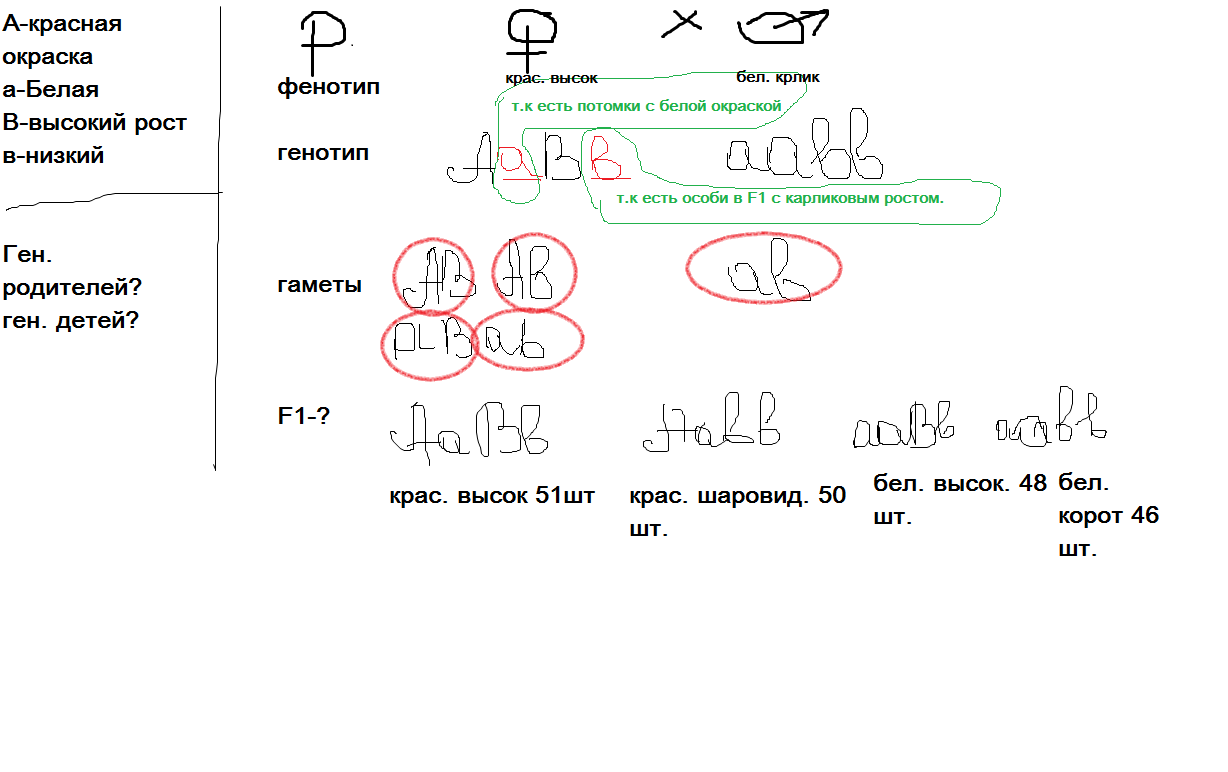 Выше решенная задача, решена правильно, только нет пояснения почему появились новые признаки. Это задача решается по третьему закону Менделя. При скрещивании двух гомозиготных особей, отличающихся друг от друга по двум и более парам признаков наследуются независимо друг от друга и комбинируются во всех возможных сочетаниях. Поэтому появляются признаки которых не было у родительских особей.