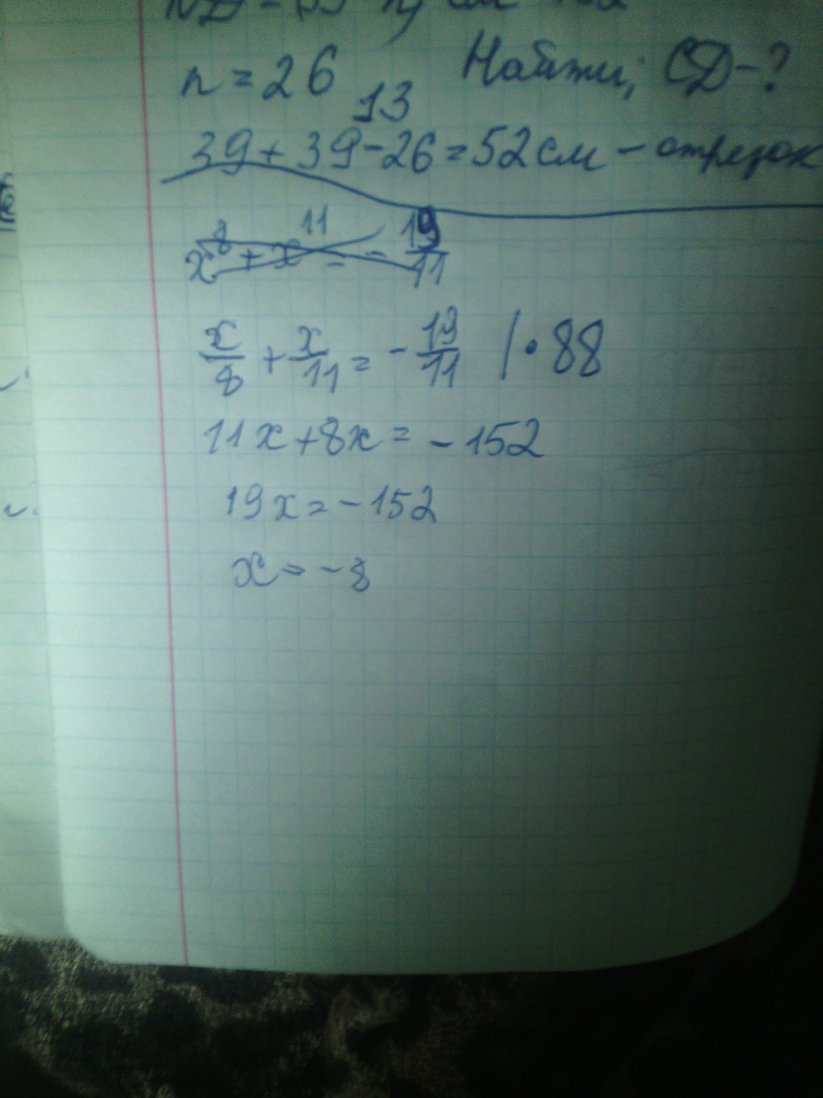Икс восьмых плюс икс одинадцатых равно минус девятьнадцать одинадцатых