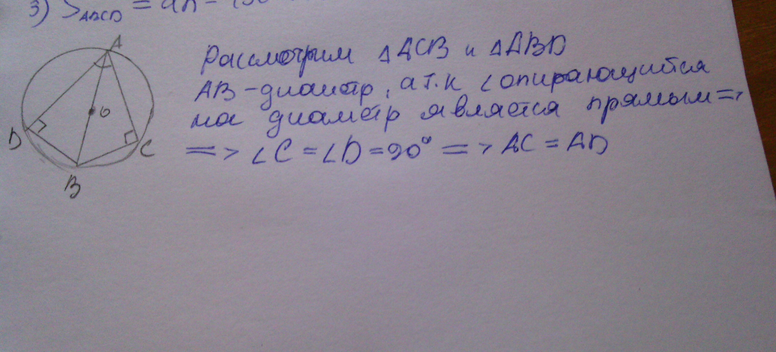 треугольники ACB и ADB равны по двум углам и общей гипотенузе=>AC=AD