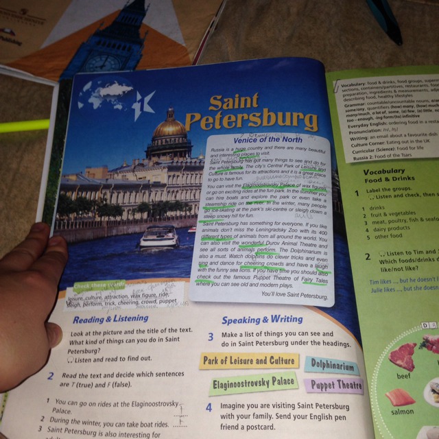 не видно половину, но последние предложение " Вы любите Санкт-Петербург ?"