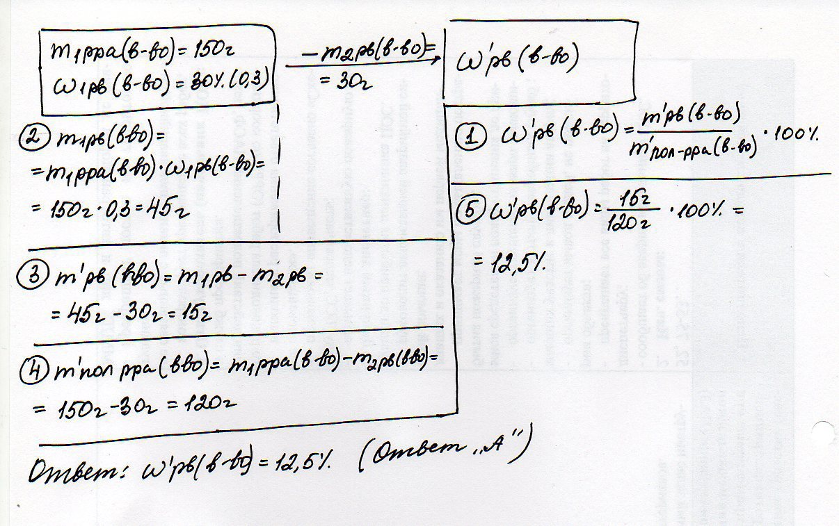 Из 150 г 30%-го раствора при охлаждении выделилось 30 г вещества. Какой стала концентрация раствора?