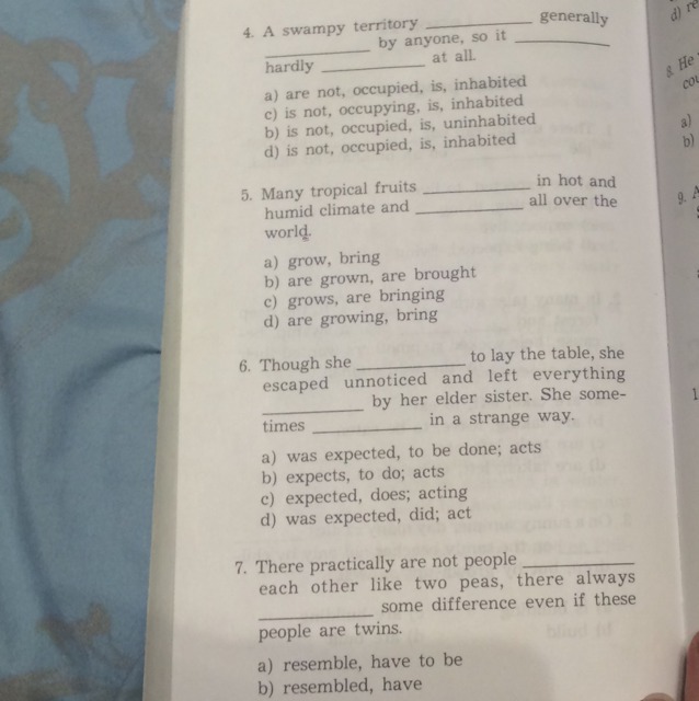 В последнем вопросе ещё 2 варианта ответа: с) resembling, has to be