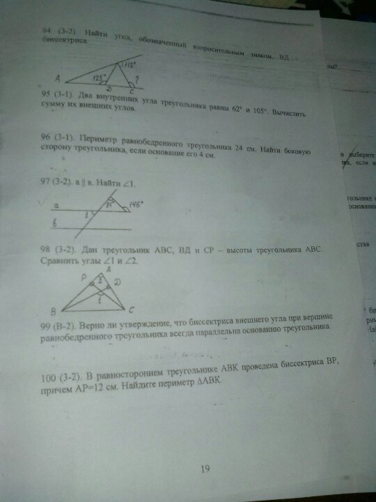 97) Внешний угол треугольника равен сумму двух углов не смежных с ним.