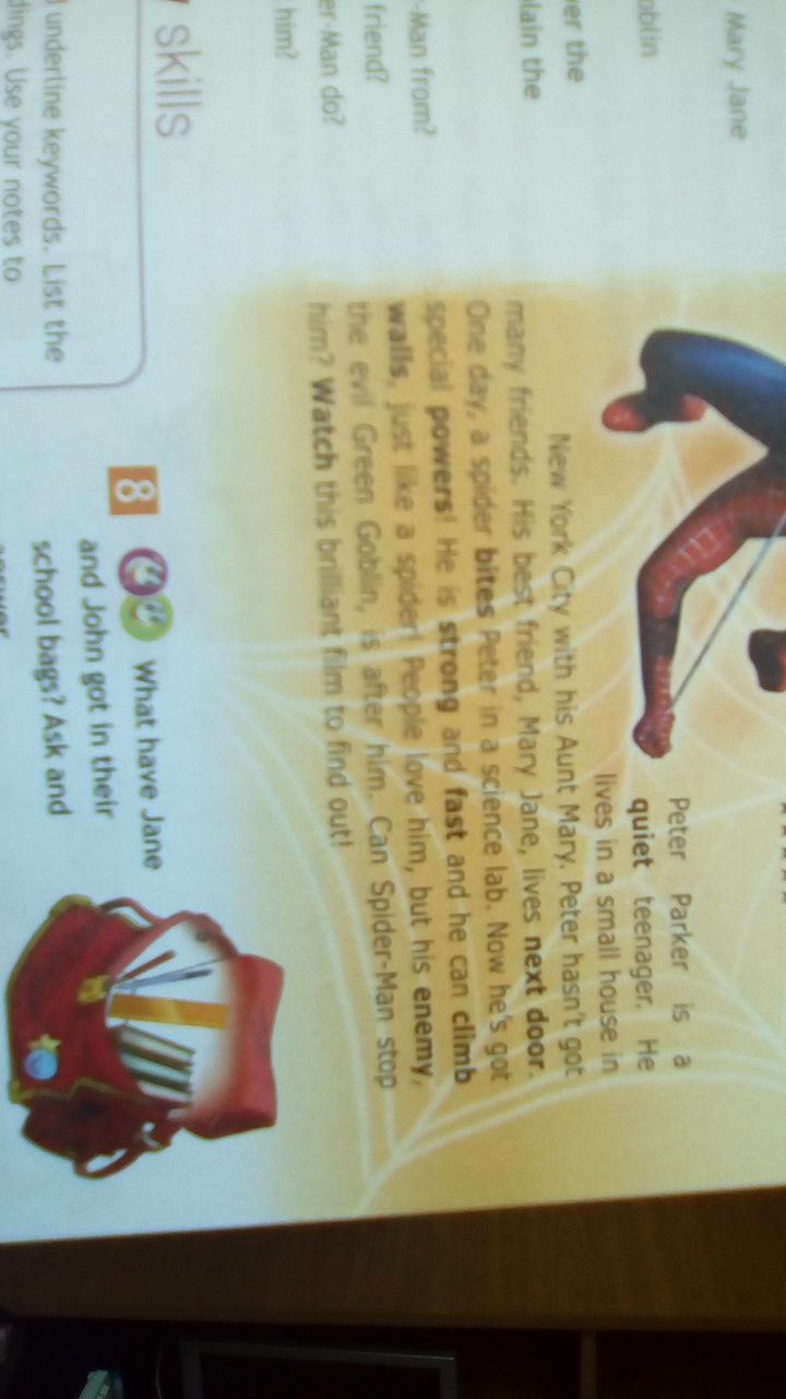 Питер Паркер - тихий подросток. Он живет в маленьком домике в Нью-Йорке с его тётей Мэй. У Питера не так много друзей. Его лучший друг это Мэри Джейн - соседка Питера. В один день паук укусил подростка в лаборатории. Теперь у него есть супер силы! Он сильный и быстрый и может лазить по стенам как паук! Люди любят его, но его злейший враг Зеленый Гоблин всегда все портит. Сможет ли Человек-паук остановить его? Посмотрите этот фильм, что бы узнать!