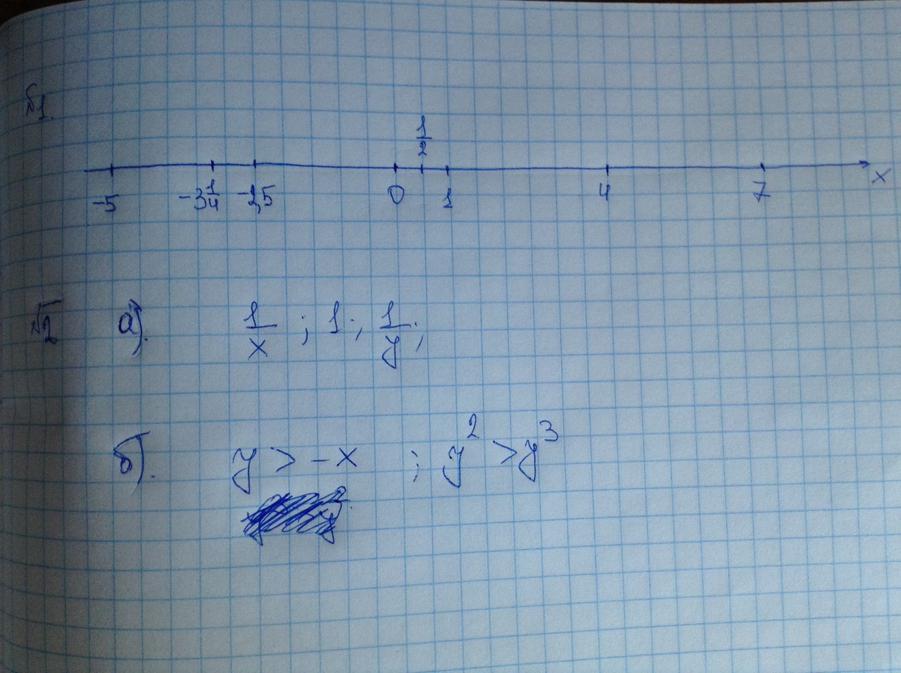 2. а) т.к x отрицательное число ,то оно самое наименьшее, далее 1 , за y примем например 0,5 при делении 1/0,5 =2 , что больше единицы.