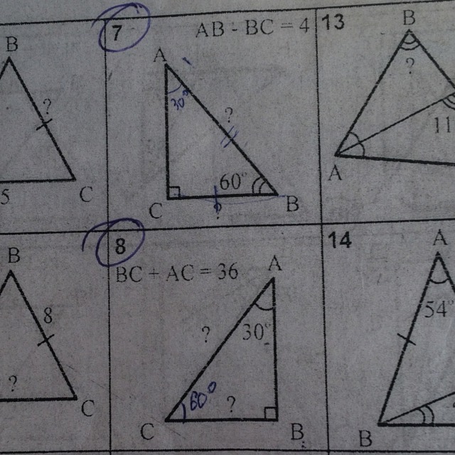 7) Катет лежащий против угла 30 градусов = половине гипотенузы