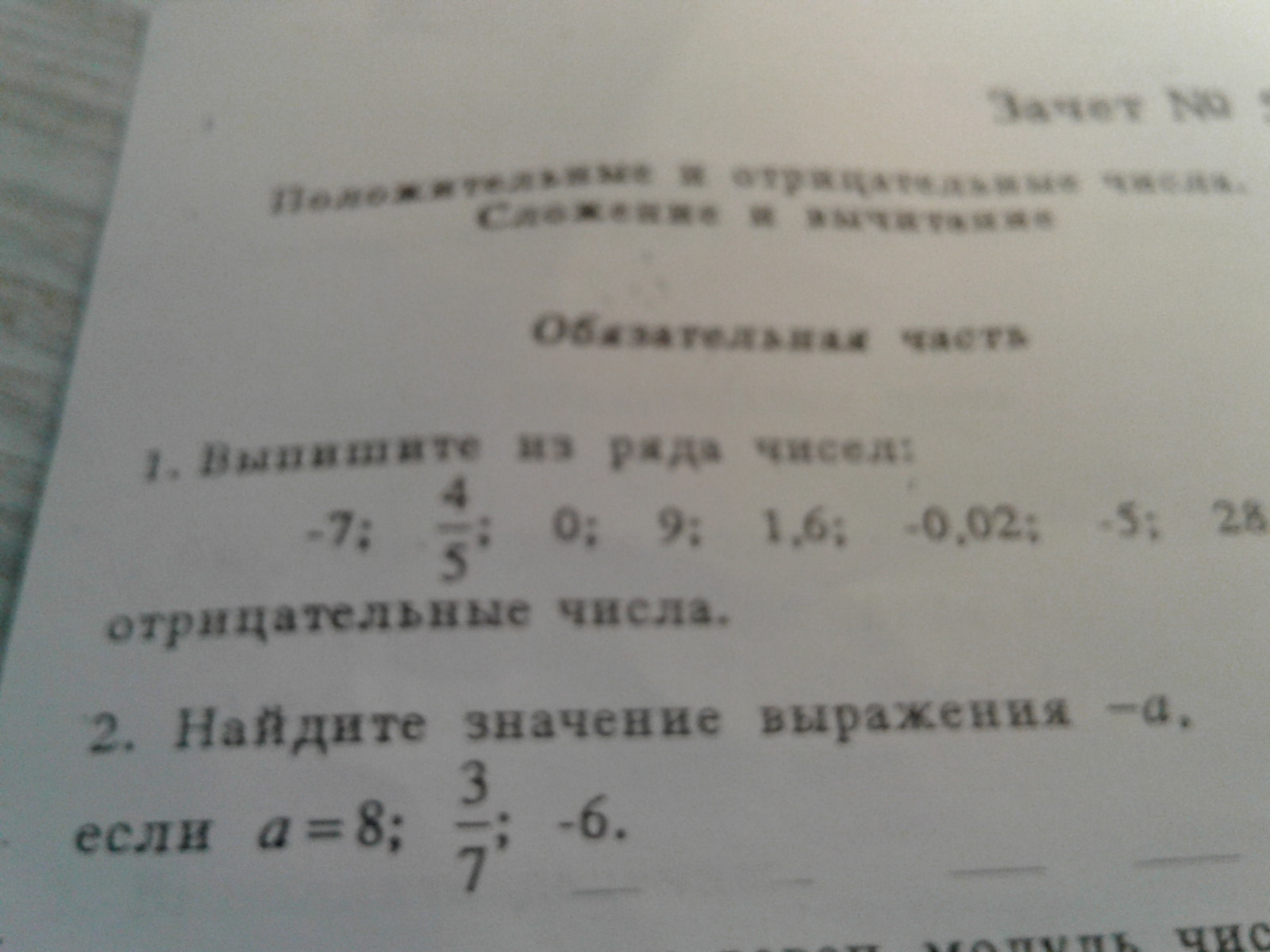 Если a=3/7, то -a=-3/7