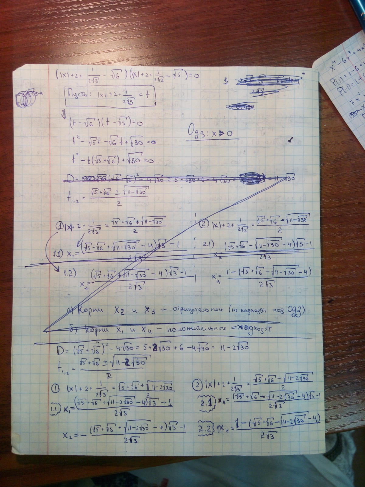 А нашёл. ну крч... Ошибка была в том, что перед √30 забыл 2 поставить. ответ почти такой же. Если интересно, так в тот раз, когда ты задавал(-ала) в тот раз, там был другой ответ. Первый корень у него со мной совпал, второй нет, так как у него корень был отрицательным => не прошёл по ОДЗ.