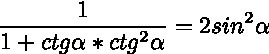 Помогите решить: 1) (1-ctg^2a+ctg^4a)/sin^2a = 1+ctg^6a; 2) 1/(1+ctga*ctg^2a) = 2sin^2a