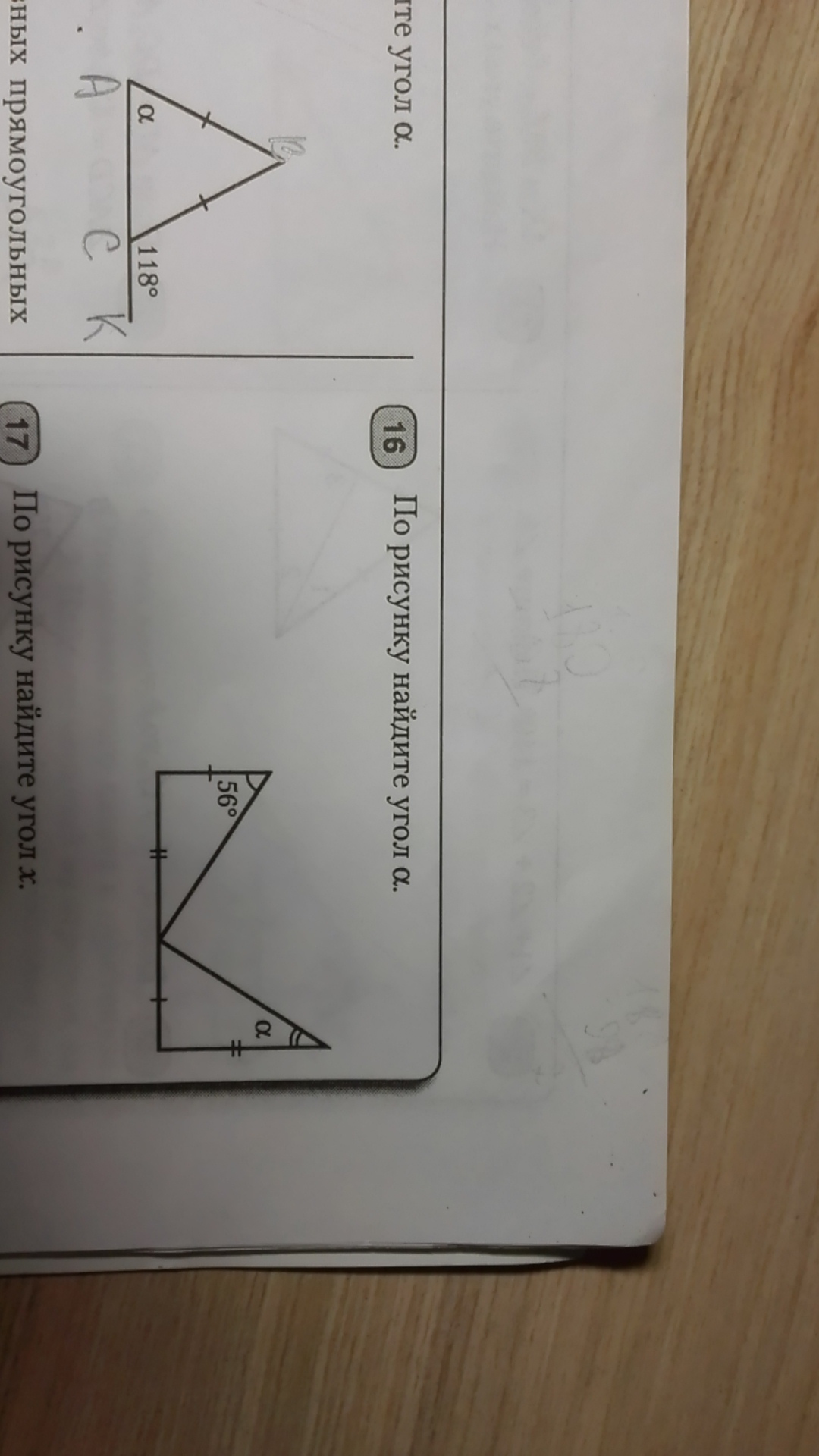 Эти треугольники равны по I признаку равенства треугольников⇒α=90°-56°=34°