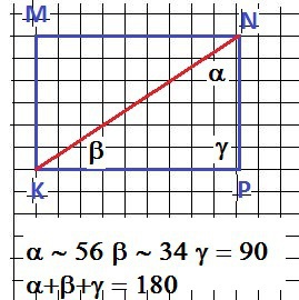 Постройте прямоугольник MNPK со сторонами MN=4,5 см и NP=3 см. Постройте отрезок KN. Измерьте углы треугольника NPK и найдите их сумму.