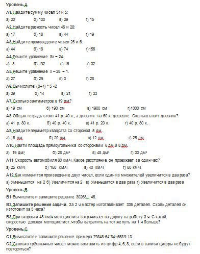 первое 39, 2 (17), 3 (156), 4 (16), 5 (29), 6 (33), 7 (190 см), 8 (40 руб. 80 коп.), 9 (20 дм. P.), 10 (48 дм2), 11 (80 км/ч), 12 (ув. на 2 раз.). В скобках написано ответ к заданию а перед скобками номер задания.