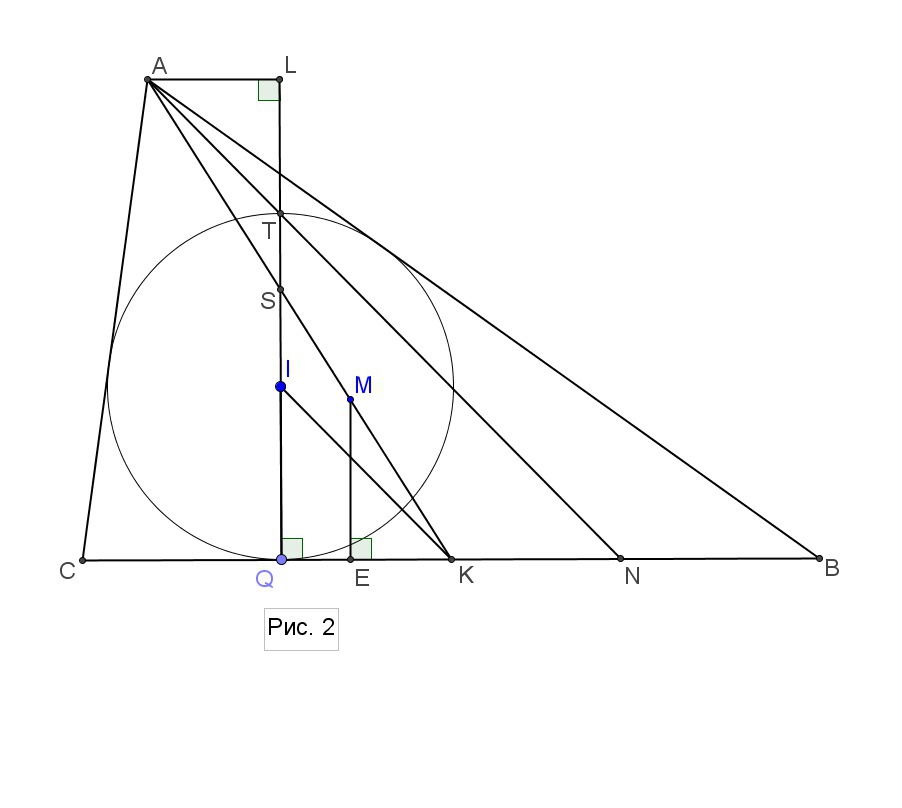 Пусть теперь QL⊥BC и QL=h, где h - высота треугольника ABC, проведенная к BC, IQ=r, точка S=AK∩QL (см. рис 2.)