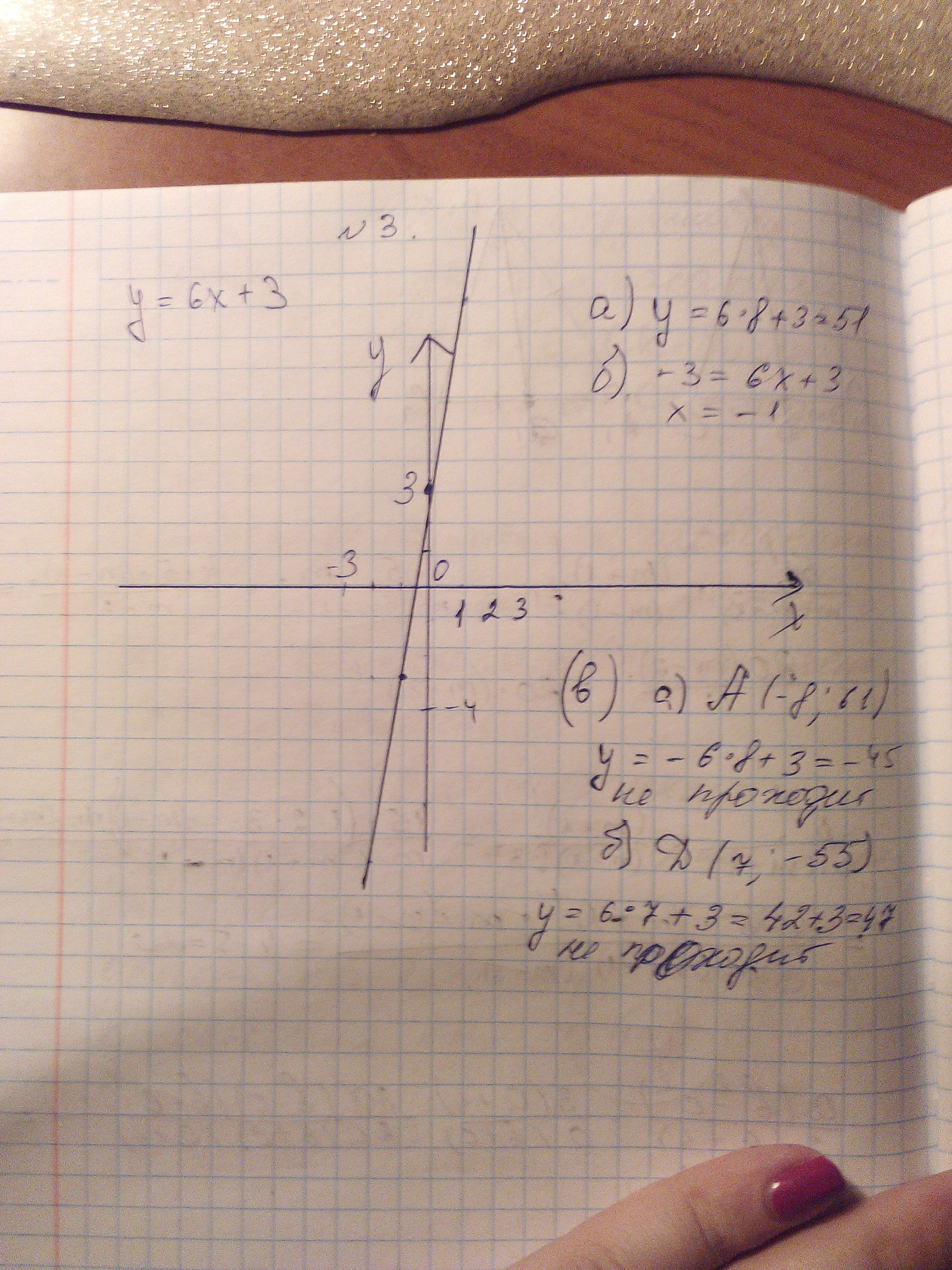 в) проходит ли график функции через точку:а)А(-8;61);б)D(7;-55)?