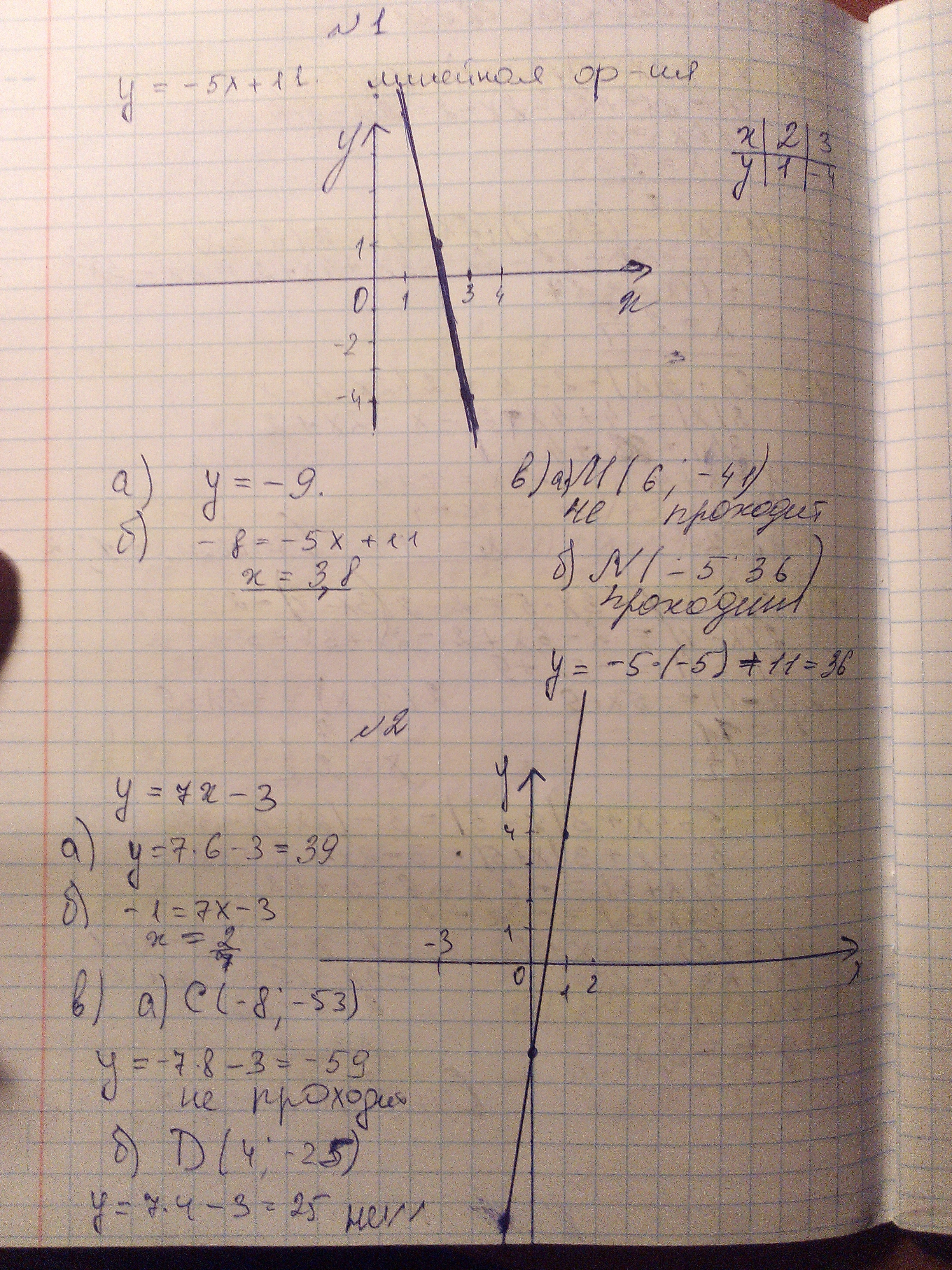 в) проходит ли график функции через точку: а) М(6;-41); б) N(-5;36)?