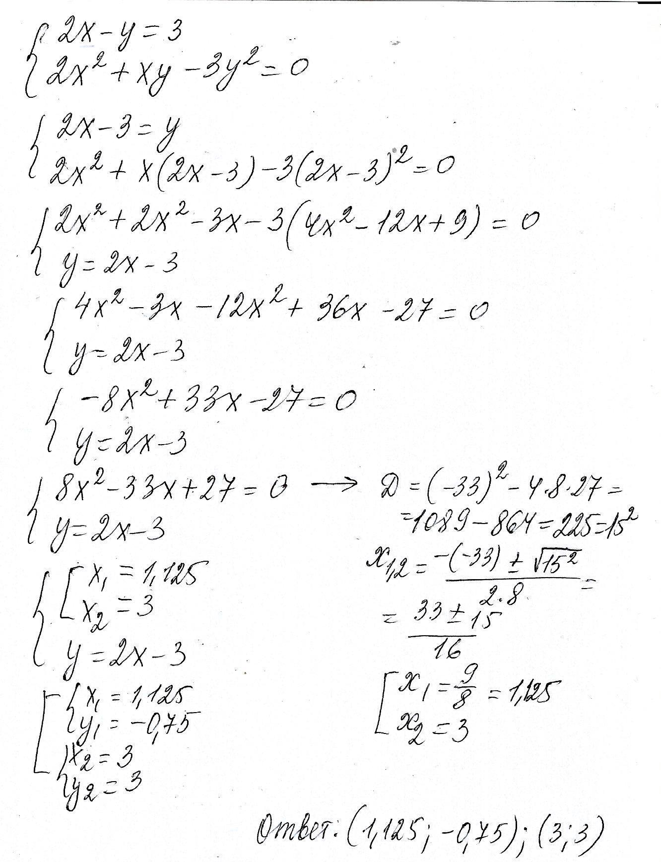 х₂=(33-15)/16=1.125 ⇒ у₂=2*1.125-3=-0,75
