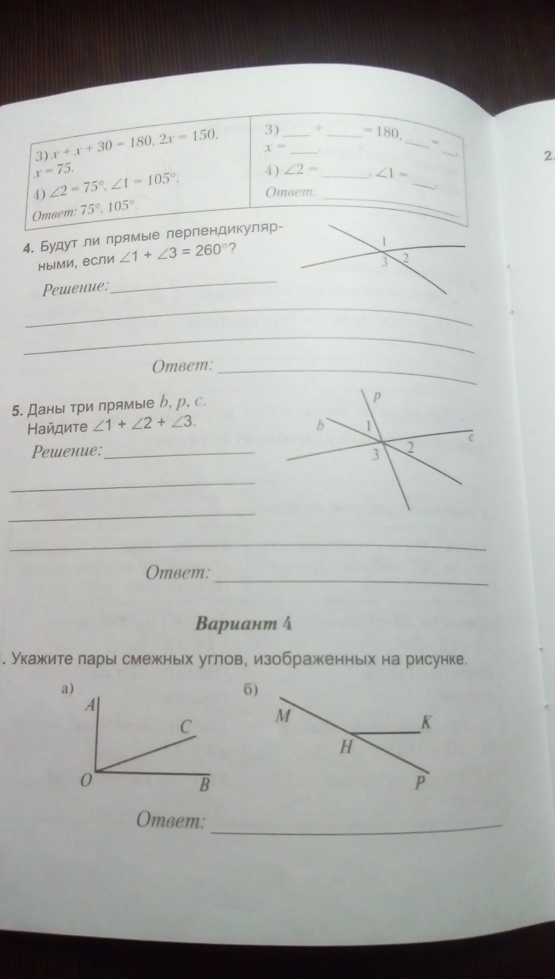 номер 4: нет, тк если бы прямые были перпендикулярными, то все углы были бы по 90 и их сумма была бы 180