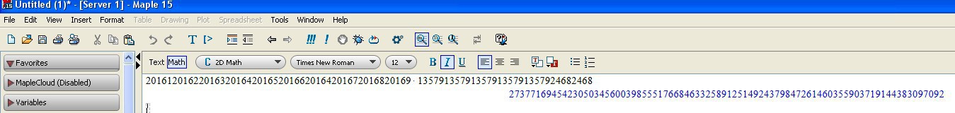 А можно узнать, как это у вас произведение чисел с 50 и 33 знаками в ответе дает 87-значное число? Вообще-то положено быть максимум 83.