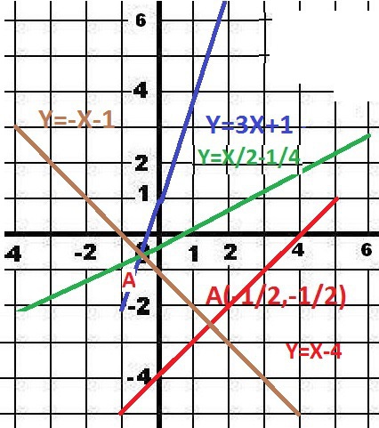 4*Y2 = 2*X - 1 или Y2= 1/2*X - 1/4