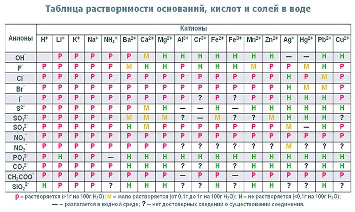 основания это все в первой строчке, причем если там буква р то это еще и щелочь. кислоты это все что в первом столбике. все остальное соли.
