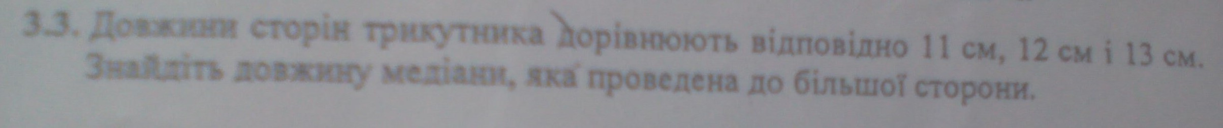 19:2=9,5(см) - довжина медіани