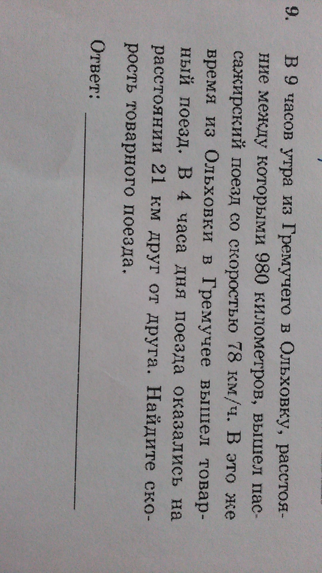 980-21=959. 959:7=137. 137-78=59.км/ч СК тов поезда.
