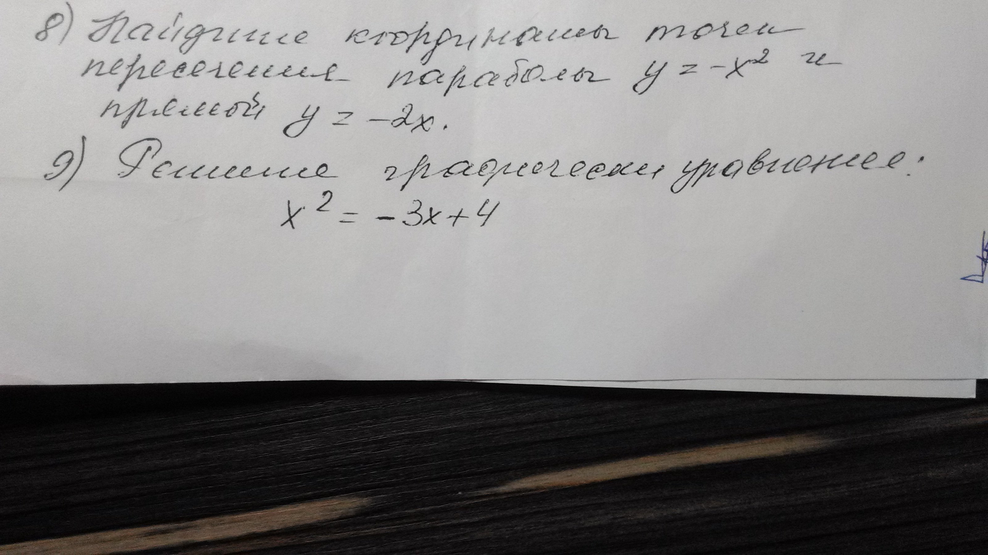 y=-2x, чтобы эти функции имели точки пересечения, они должны иметь решения при одинаковых значениях х и у проще говоря надо решить систему уравнений: у=-х^2 и у=-2х ответа два: (0;0), (2;-4)