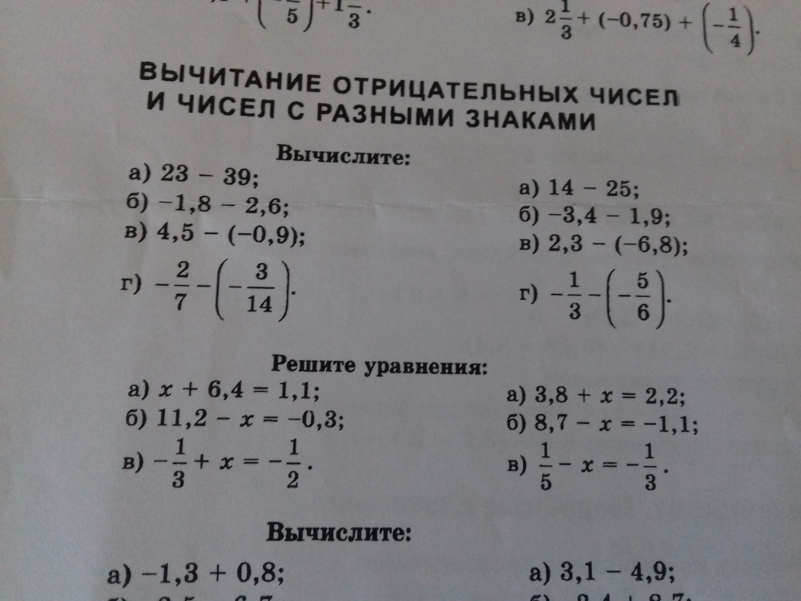г) -¹/₃-(-⁵/₆) = -¹/₃+⁵/₆ = -²/₆+⁵/₆ = ³/₆ или = 0,5.