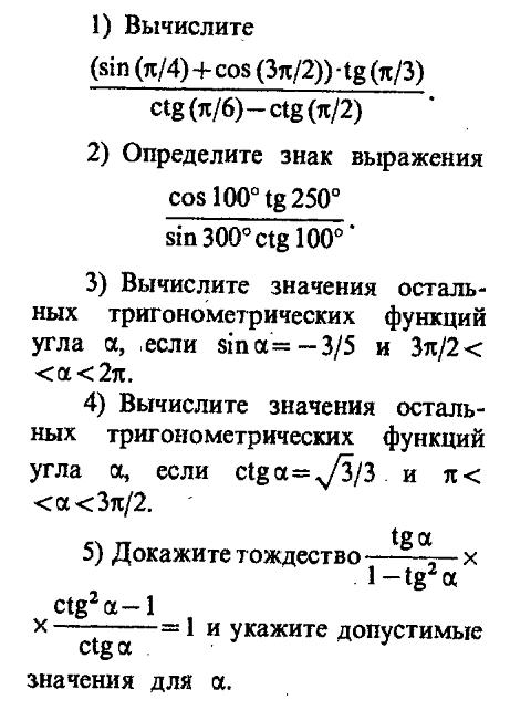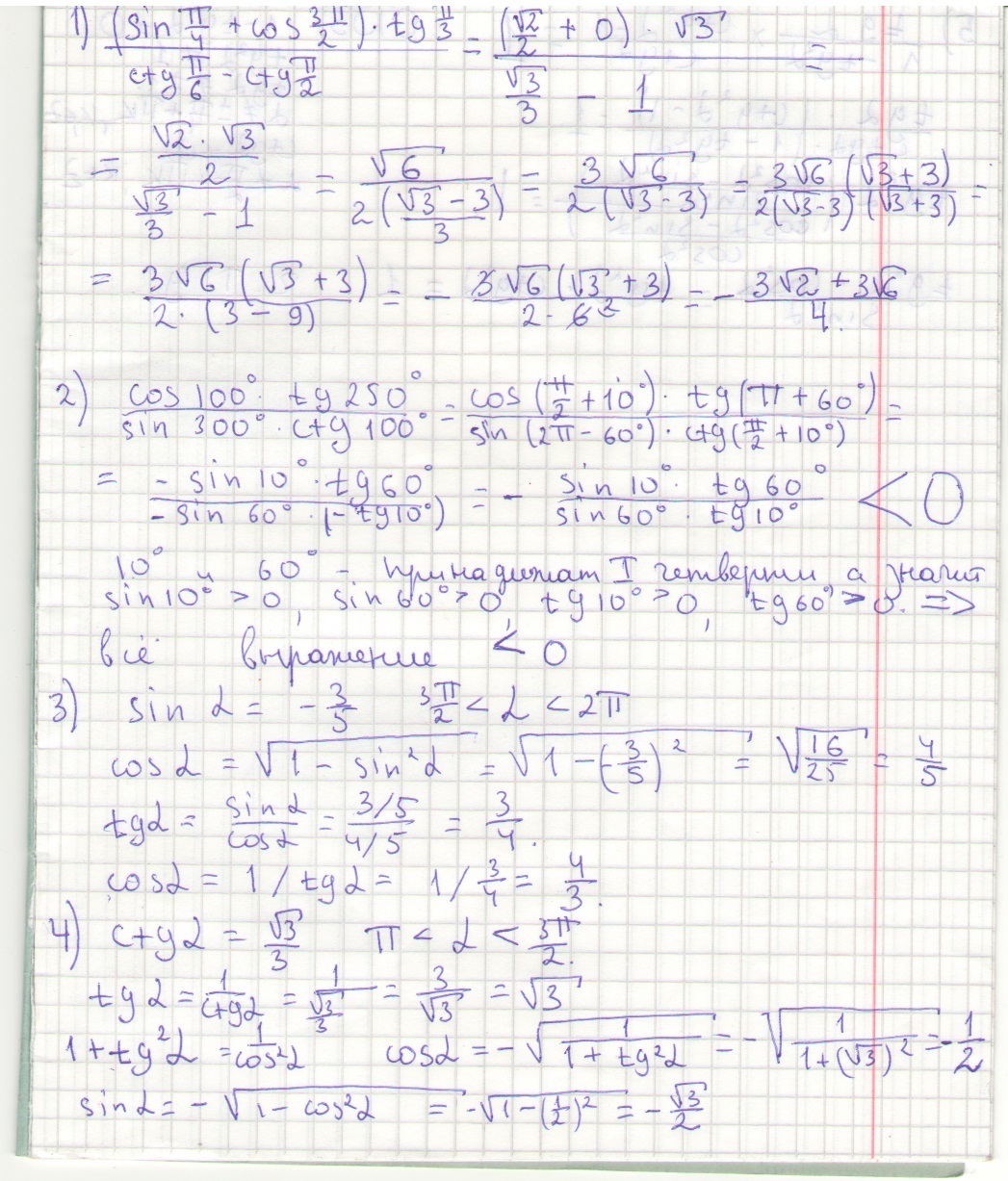 4) Вычислите значения остальных тригонометрических функций угла а(альфа), если ctg a(альфа)=√3/3 и п<a<3п/2
