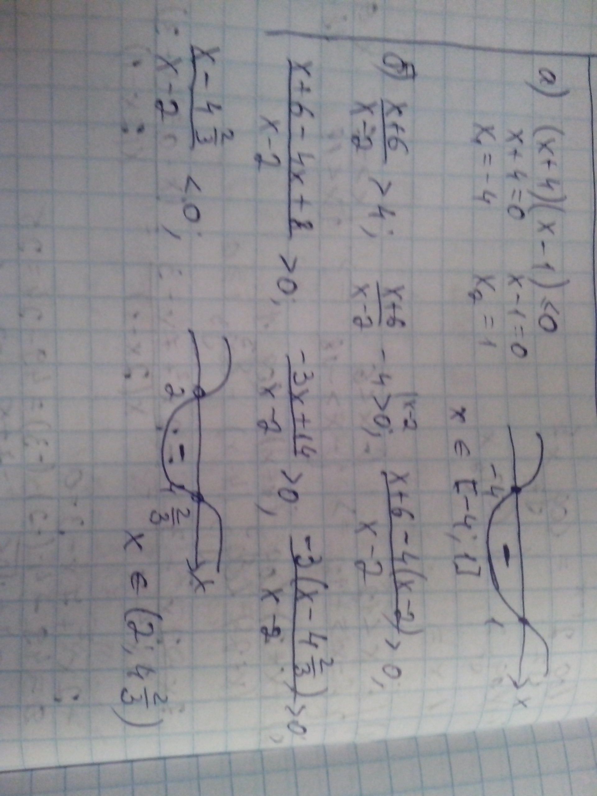х1=-4, х2=1 получается 3 интервала: (-∞; -4)∪(-4;1)∪(1;+∞)