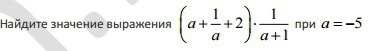 Найдите значение выражения (a+1/a+2)*1/a+1 при а= -5