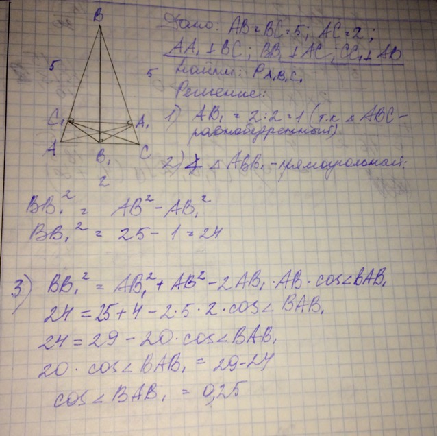ВМ/ВВ₁=ВС₁/АВ ВМ=ВС₁*ВВ₁/АВ